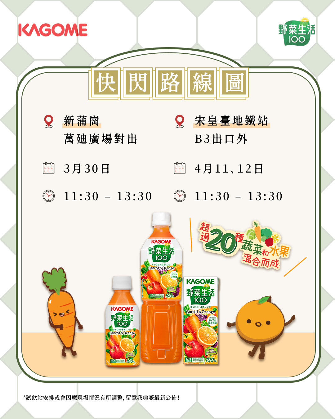 * 試飲站安排或因應現場情況調整,請密切留意 @kagome_hk 最新公布。